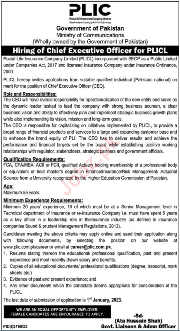Ministry of Communications invites applications for job positions advertised in daily Ausaf dated 18 December 2022 for following vacancies in Islamabad, islamabad Islamabad Pakistan.