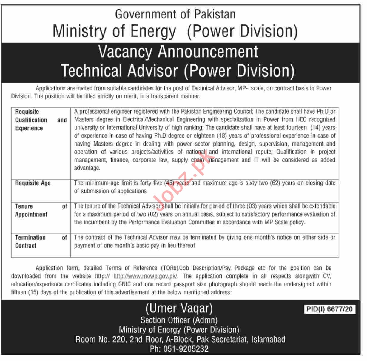 Ministry of Energy Power Division Islamabad Jobs 2021