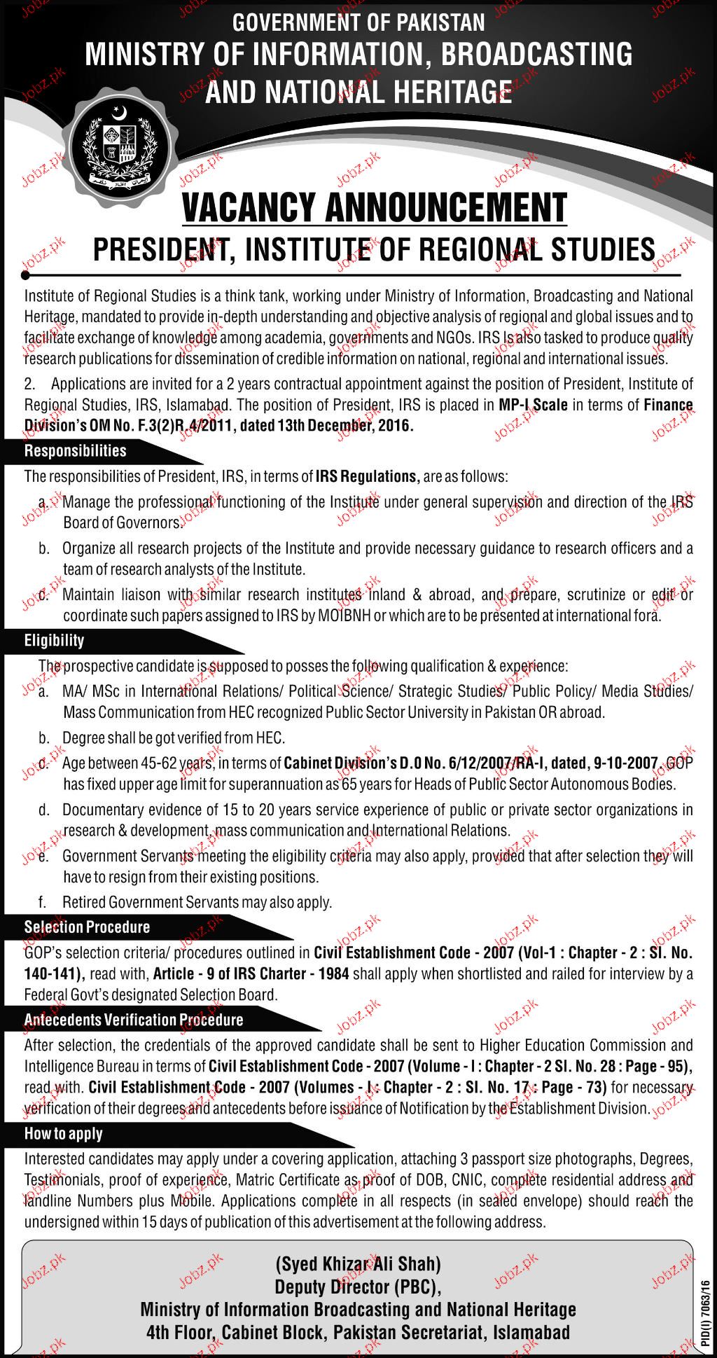 Apply as per details in job advertisement. Login to view further details of how to apply via https://www.jobz.pk online.
