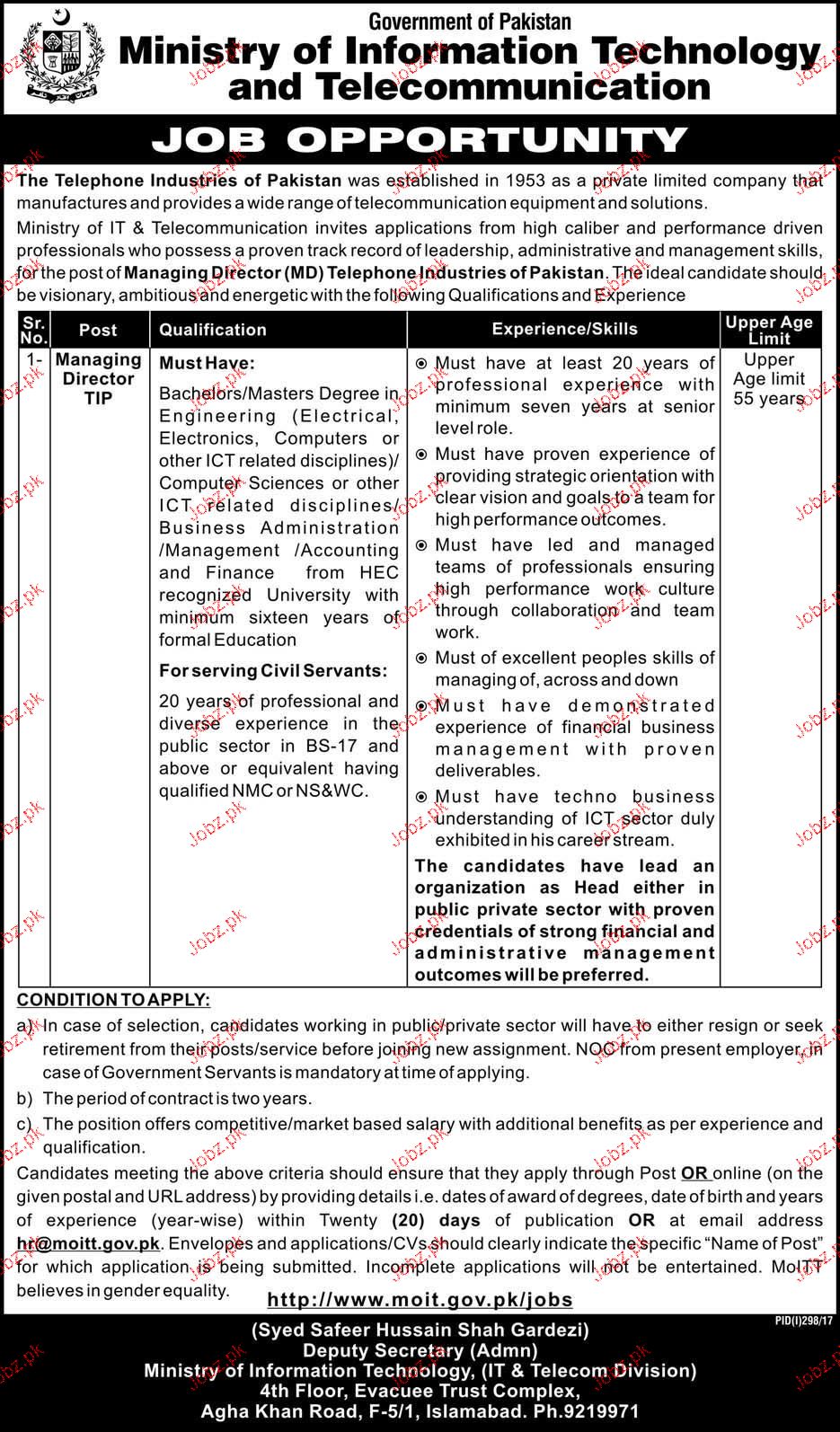 Latest Ministry of Information Technology Management Posts Islamabad 2025