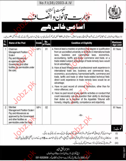 Ministry of Law and Justice Government Of Pakistan Jobs