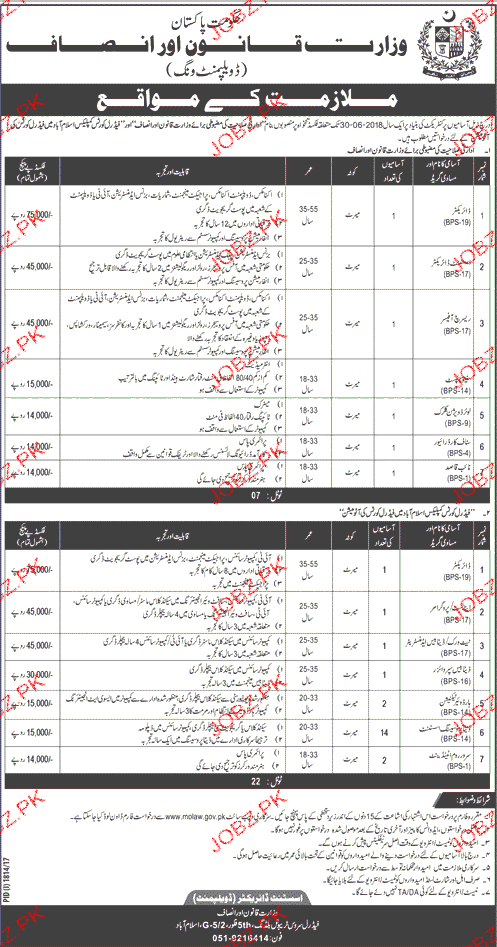 Ministry of Law and Justice, Government of Pakistan Jobs