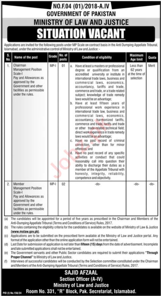 Ministry Of Law And Justice Islamabad Jobs 2024