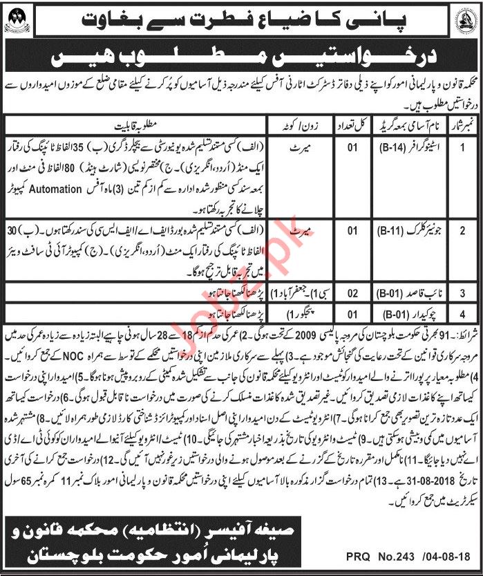 Latest Ministry of Law Justice and Parliamentary Affairs Law Justice and Human Rights Posts Quetta 2025