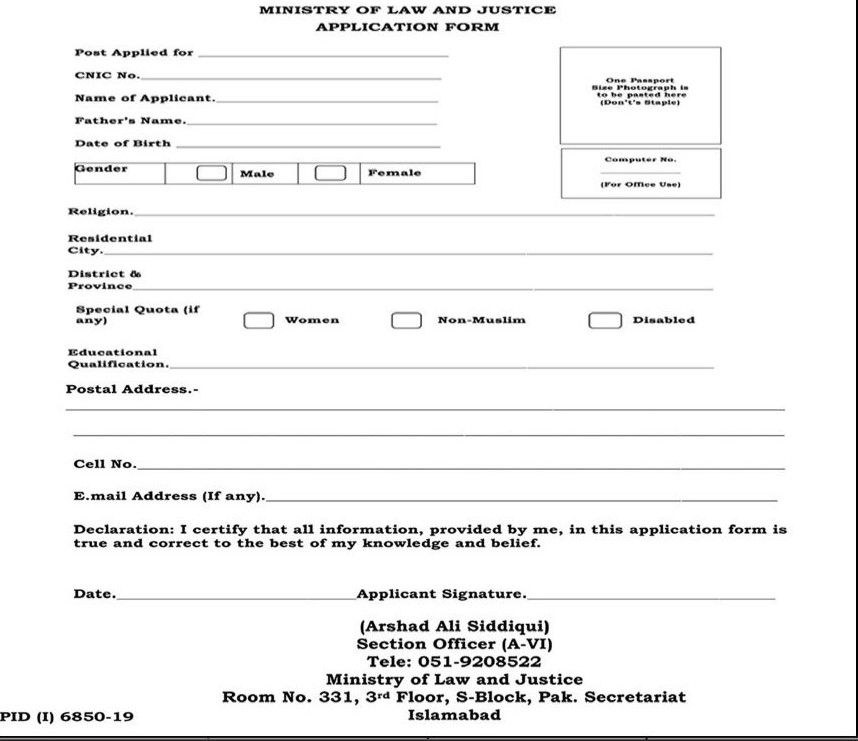 Latest Ministry of Law & Justice Admin Clerical Posts Islamabad 2025