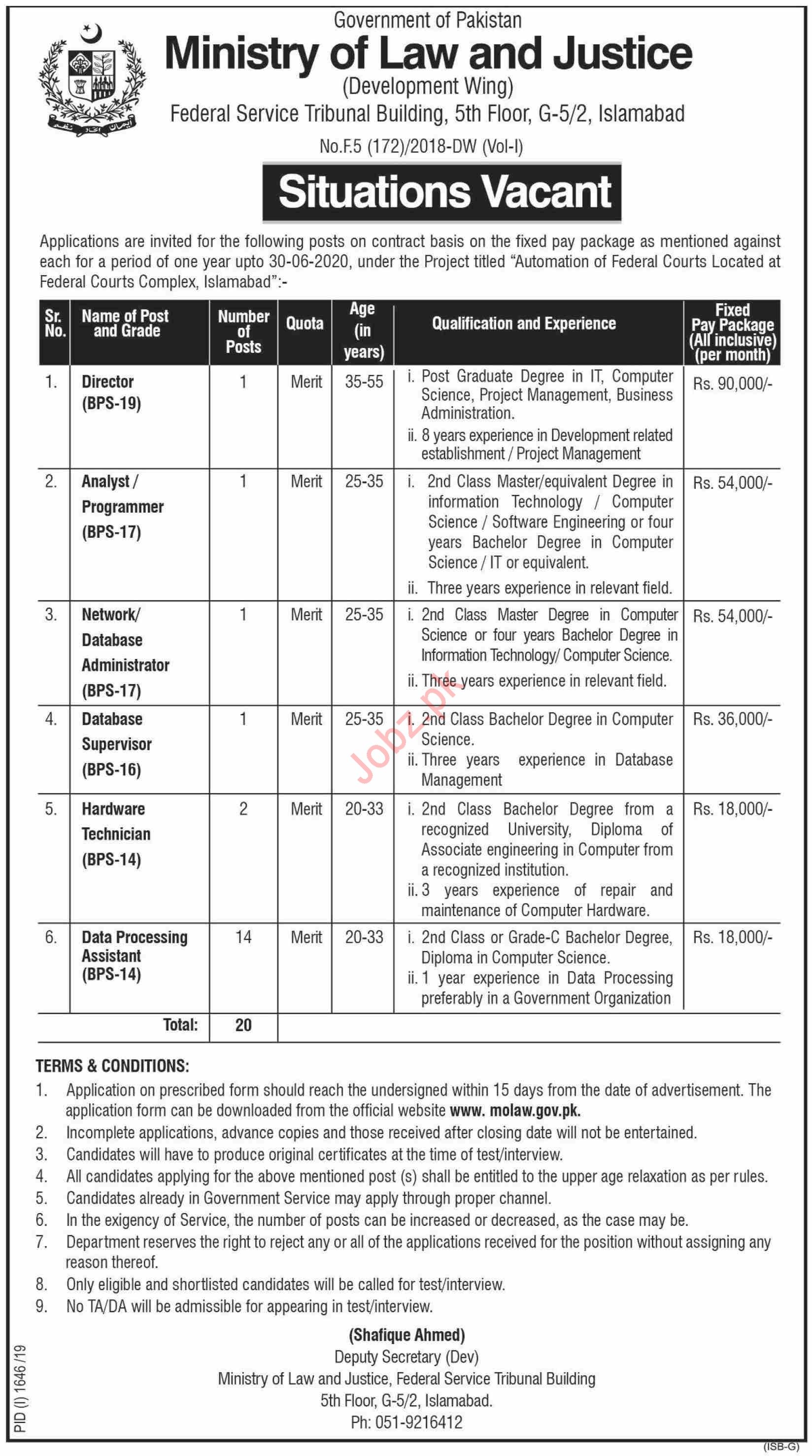 Ministry Of Law & Justice Islamabad Jobs 2019