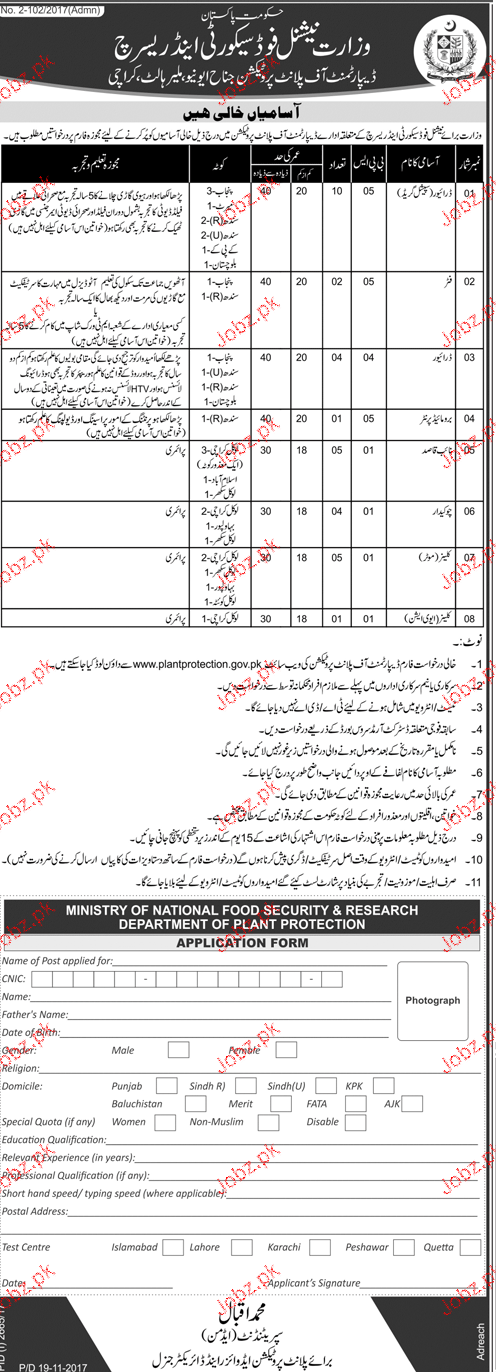Latest Ministry of National Food Security & Research MNFSR Driving Posts Karachi 2025