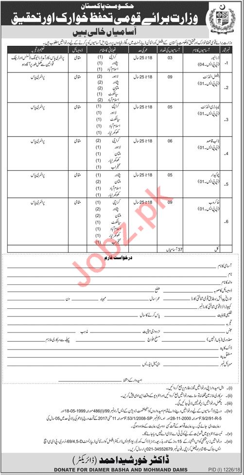 Vacancies in Ministry of National Food Security & Research MNFSR Advertisement September 2018