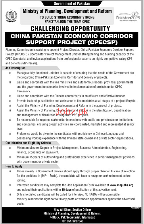 Latest Ministry of Planning Development & Reform Management Posts Islamabad 2025