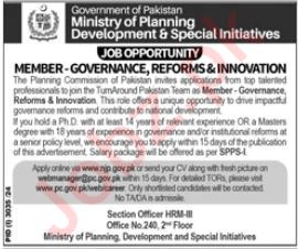 Vacant posts including governance member are announced in Ministry of Planning Development and Special Initiative Karachi, karachi Sindh Pakistan as per 3 November 2024 advertisement in daily Jang Newspaper. Candidates with Bachelor, MS and Master etc. educational background will be preferred.