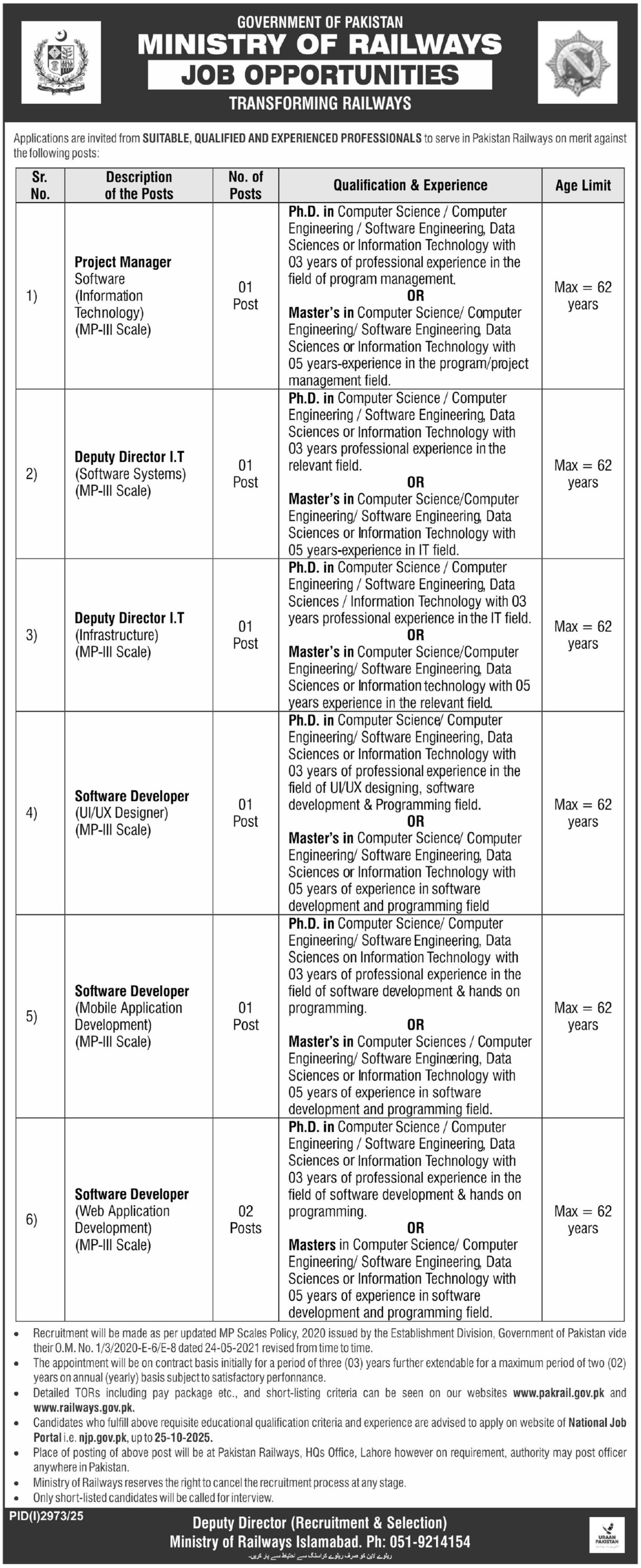 Latest Ministry of Railways IT Posts Islamabad 2025