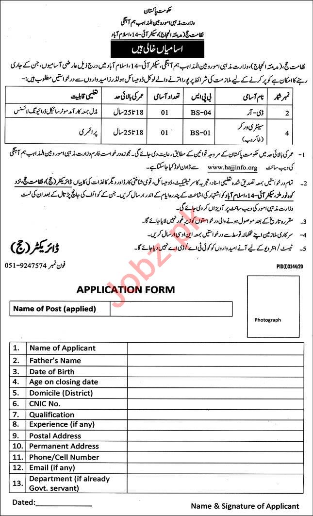 Vacancies in Ministry of Religious Affairs & Interfaith Harmony Advertisement December 2020