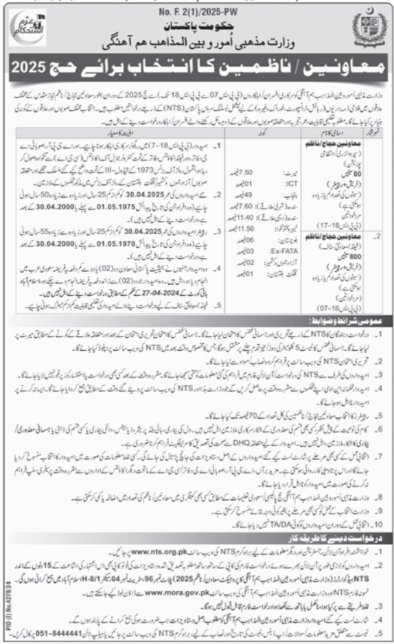 Vacancies in Ministry of Religious Affairs & Interfaith Harmony Advertisement December 2024
