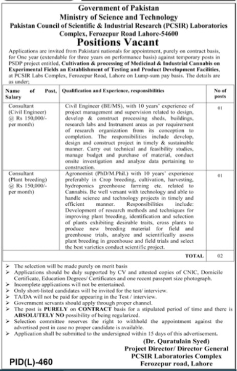 Latest Ministry of Science and Technology MOST Management Posts Lahore 2025