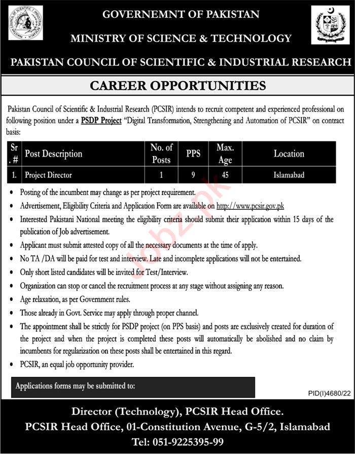 Vacant posts including project director are announced in Ministry of Science and Technology MOST Islamabad, islamabad Islamabad Pakistan as per 29 January 2023 advertisement in daily Roznama 92 News Newspaper. Candidates with Bachelor, MS and Master etc. educational background will be preferred.