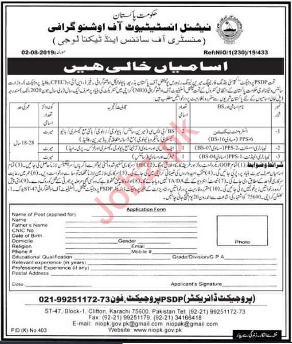 Well Reputed Government Organization National Institute Of Oceanography, Ministry Of Science and Technology in Karachi is looking for qualified, expert and Well-Mannered staff for their Organization for the Job of Instrument Technician, Laboratory Assistant and Laboratory Attendant.