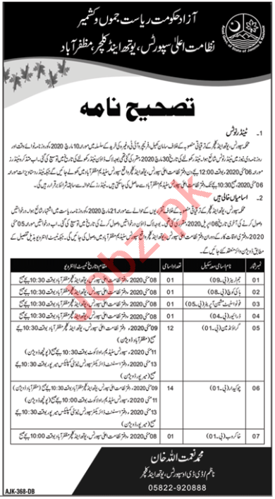 Ministry Of Sports Youth & Culture AJ&K Jobs 2020