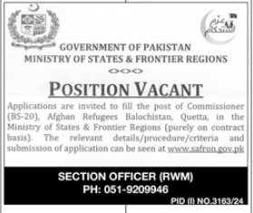 Ministry of States and Frontier Regions Islamabad Job 2024
