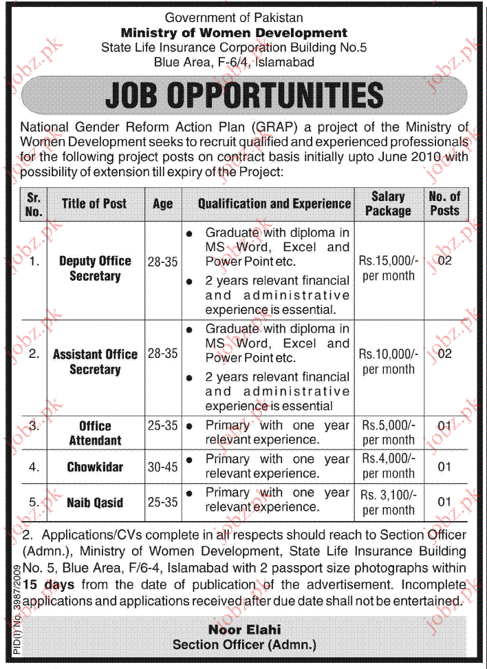 Apply as per details in job advertisement. Login to view further details of how to apply via https://www.jobz.pk online.