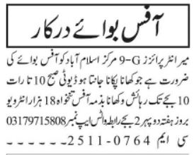Mir Enterprises Pvt Limited is looking for candidates for following posts as per job advertisement published in daily Jang Newspaper of November 28, 2025 for location G-9 Markaz Islamabad, islamabad Islamabad Pakistan: