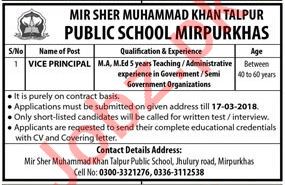 Mir Sher Muhammad Khan Talpur Public School MSMKTPS Jobs