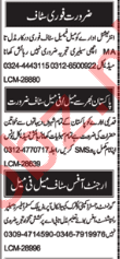 Apply as per details in job advertisement. Login to view further details of how to apply via https://www.jobz.pk online.
