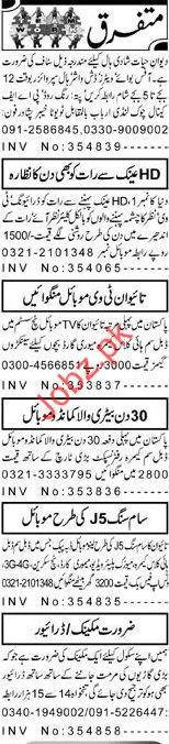Miscellaneous Staff Jobs 2018 in Daily Aaj Peshawar