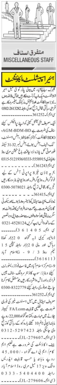 Miscellaneous Staff Required At Private Organization