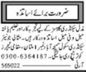 Missali Junior Secondary School invites applications for job positions advertised in daily Jang dated 7 May 2022 for following vacancies in Multan, multan Punjab Pakistan.