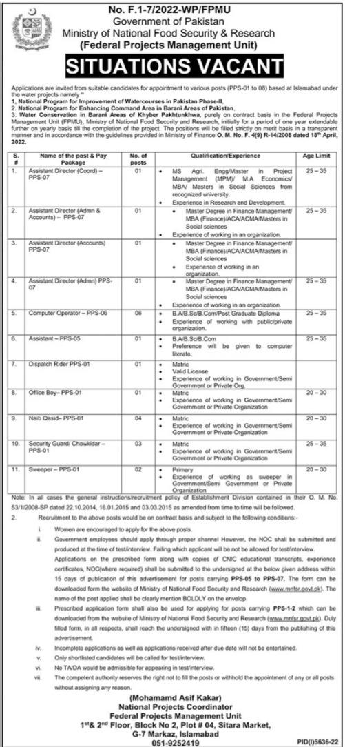 Vacancies in Ministry of National Food Security & Research MNFSR Advertisement March 2023