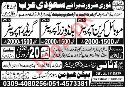 Mobile Carne Operator & Grader Operator Jobs 2021 in KSA