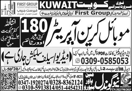 New Gondal Manpower Bureau Kuwait, kuwait Kuwait invites applications from eligible candidates for the post of mobile crane operator as per advertisement of December 17, 2025 published in daily Express Newspaper. Persons with DAE, Intermediate and Matric etc. education can apply.