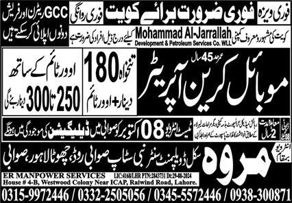 Marwa Skill Development Center invites applications for job positions advertised in daily Express dated 28 September 2024 for following vacancies in Kuwait, kuwait Kuwait.