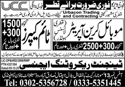 Mobile Crane Operator & Time Keeper Jobs 2025 in Qatar