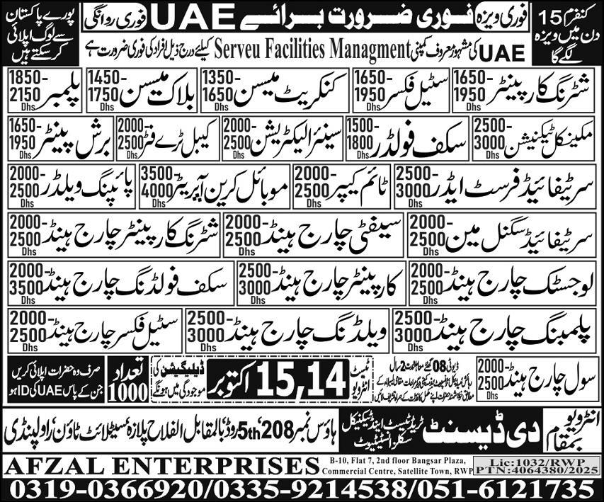 The Descent Trade Test Center is looking for candidates for following posts as per job advertisement published in daily Express Newspaper of October 9, 2025 for location Sharjah, abu dhabi UAE: