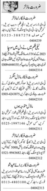 Media Sector latest Classifieds Acting Modeling jobs and others can be applied till 13 May 2023 or as per closing date in newspaper ad. Read complete ad online to know how to apply on latest Media Sector job opportunities.