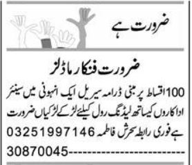 Latest Media Sector Acting Modeling Posts Lahore 2025