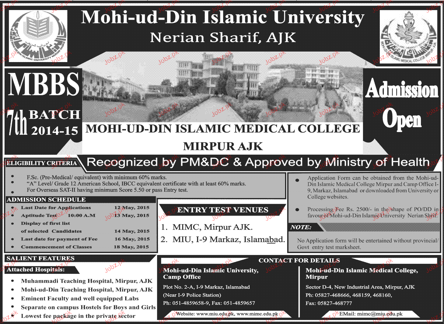 Mohi Ud Din Islamic University Admission in MBBS