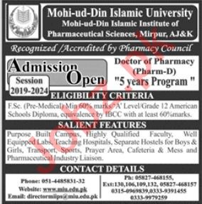 Mohi ud Din Islamic University Admissions 2019 Pharm D