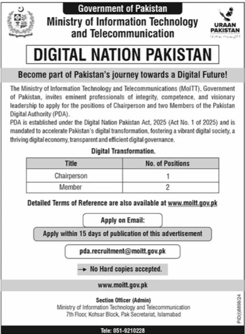 Vacancies in Ministry of Information Technology & Telecommunication MOIT Advertisement June 2025