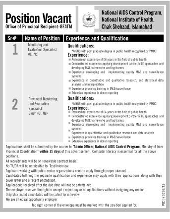 Monitoring and Evaluation Specialists Job Opportunity