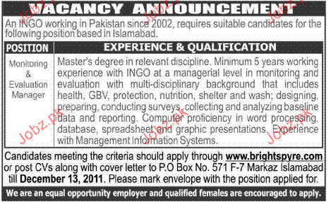 Apply as per details in job advertisement. Login to view further details of how to apply via https://www.jobz.pk online.