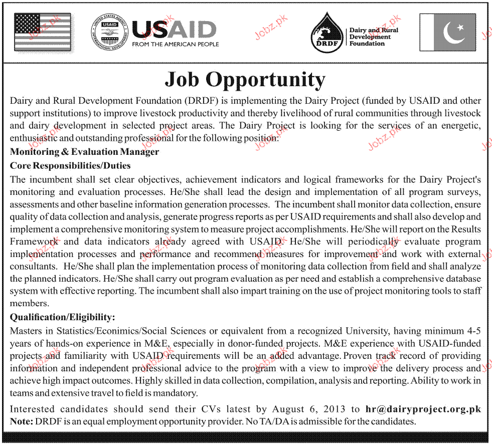 Apply as per details in job advertisement. Login to view further details of how to apply via https://www.jobz.pk online.