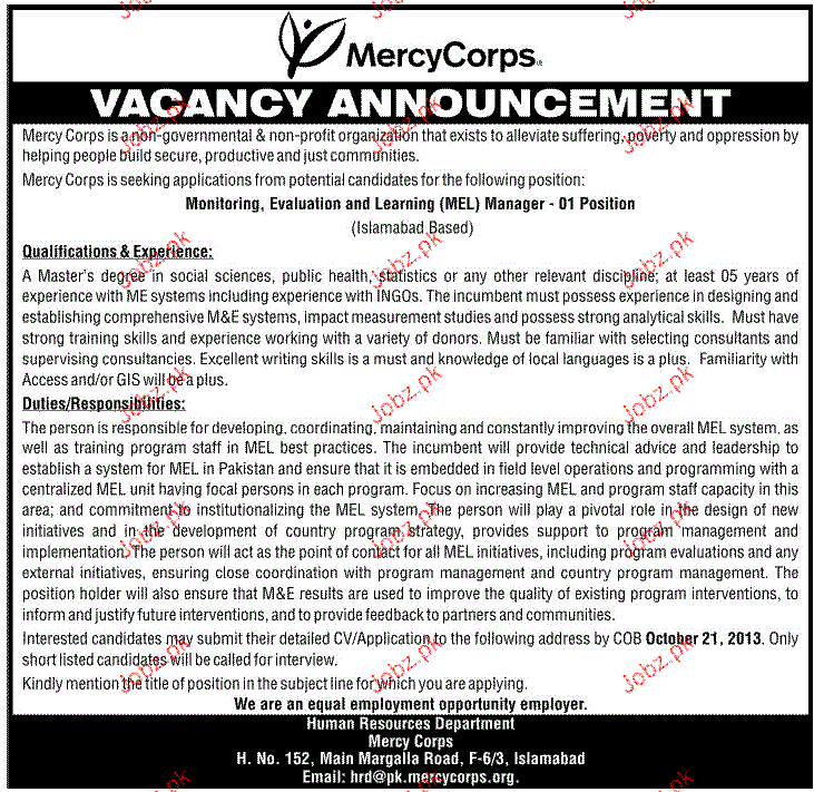 Apply as per details in job advertisement. Login to view further details of how to apply via https://www.jobz.pk online.