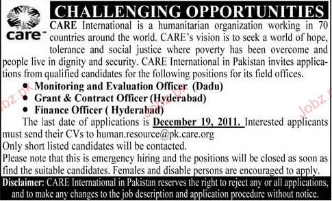Monitoring & Evaluation Officer, Finance Officer Required