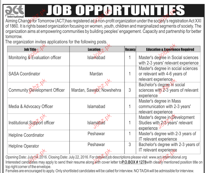 Apply as per details in job advertisement. Login to view further details of how to apply via https://www.jobz.pk online.