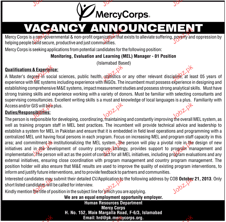 Apply as per details in job advertisement. Login to view further details of how to apply via https://www.jobz.pk online.