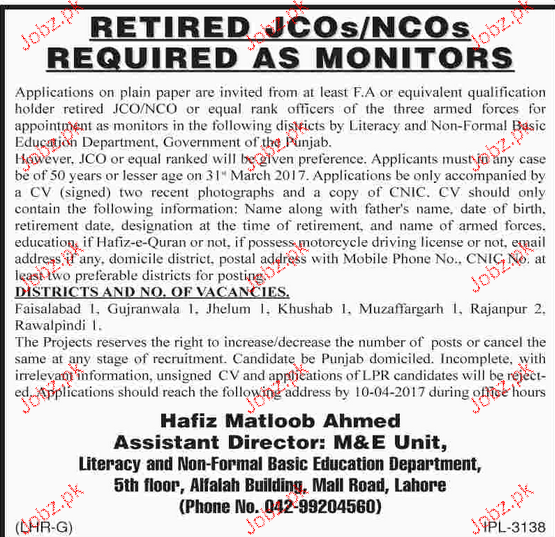 Monitors Job In Literacy And Non Formal Basic Educataion Dep