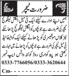 Private School Quetta, quetta Balochistan Pakistan invites applications from eligible candidates for the post of female teacher, montessori teacher, english language teacher and teacher as per advertisement of July 15, 2023 published in daily Jang Newspaper. Educational qualifications required Bachelor and Master etc.