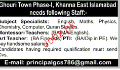 Latest Private Company Teaching Posts Rawalpindi 2025